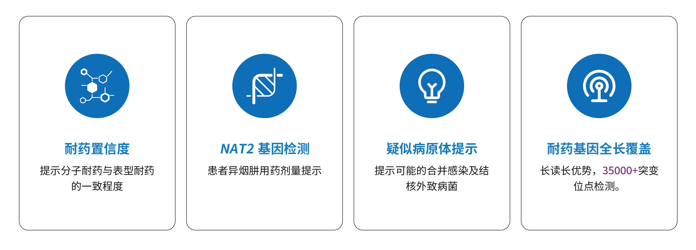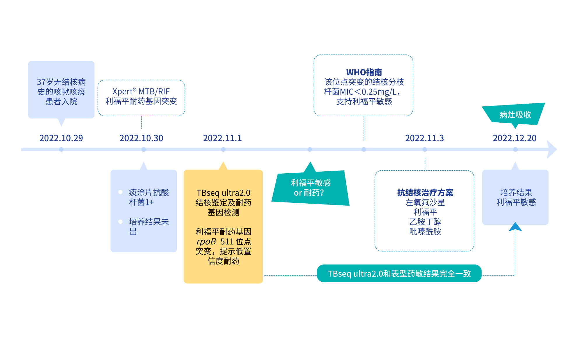 據WHO數據顯示,70%以上的利福平耐藥患者不止存在利福平耐藥,TBseq耐藥檢測明顯快于培養,獨家耐藥置信度提示更全面的耐藥信息,為耐多藥結核患者的早期確診提供了一個(gè)快速精準的診斷方法,幫助患者保留了利福平治療的希望。